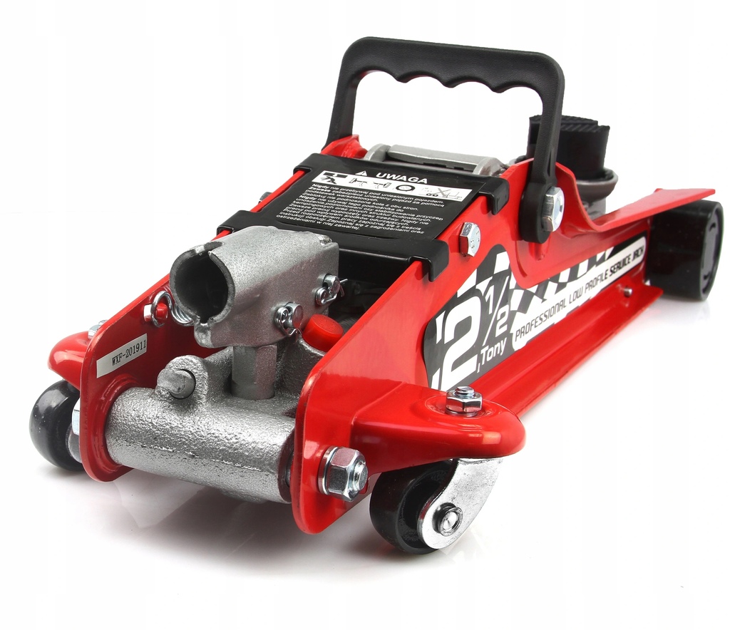 Wykonany z grubej blachy stalowej, zapewniającej odpowiednią sztywność konstrukcji. Wygodny w użytkowaniu, wyposażony w 4 koła, które umożliwiają szybkie podstawienie podnośnika we właściwe miejsce. Praca w zakresie od 89 do 360 mm. Podnośnik niskoprofilowy może być używany podczas pracy z samochodami o obniżonym zawieszeniu.