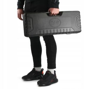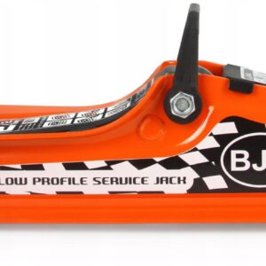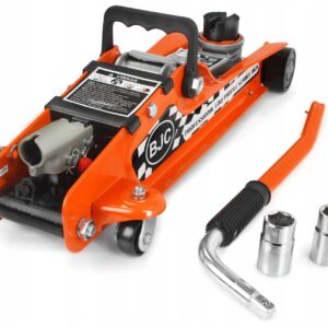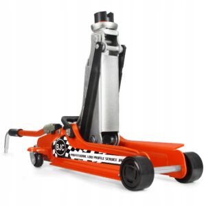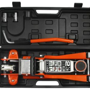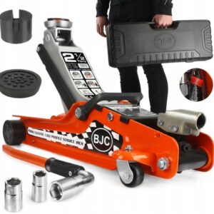 Podnośnik niskoprofilowy w zestawie z walizką, dwoma gumami, rączką dwufunkcyjną oraz nasadkami.