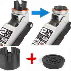 W zestawie z podnośnikiem jest wysoka guma z wycięciem na próg. Guma z takim nacięciem gwarantuje stabilne umieszczenie samochodu w siodle podnośnika : wysokość gumy – 3,5 cm / / / średnica gumy – 4,5 cm