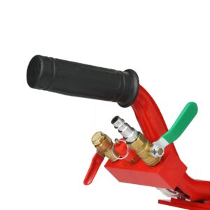 zawory kulowe 3/8” z wygodnymi dźwigniami oznaczonymi kolorem: zasilający – zielona, spustowy – czerwona,