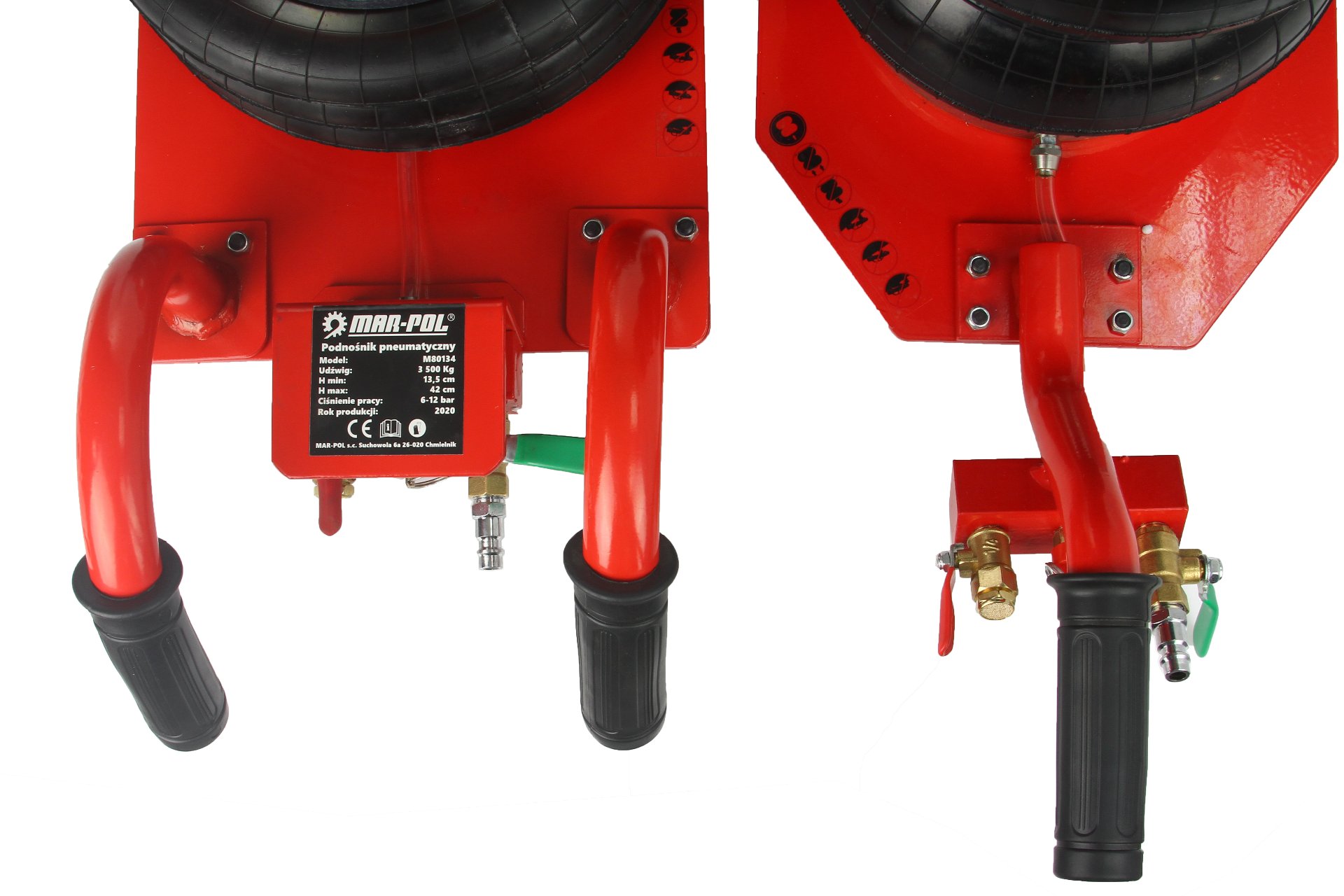 Warsztatowy podnośnik pneumatyczny 3,5T typu bałwanek, wykonany z bardzo wysokiej jakości materiałów. Podnośnik pneumatyczny jest przeznaczony do prac w których wymagane jest podnoszenie dużych ciężarów. Podnośnik przeznaczony jest do pracy w warsztatach samochodowych, wulkanizacjach, gospodarstwach rolniczych i miejscach gdzie występuje potrzeba podnoszenia urządzeń i maszyn.