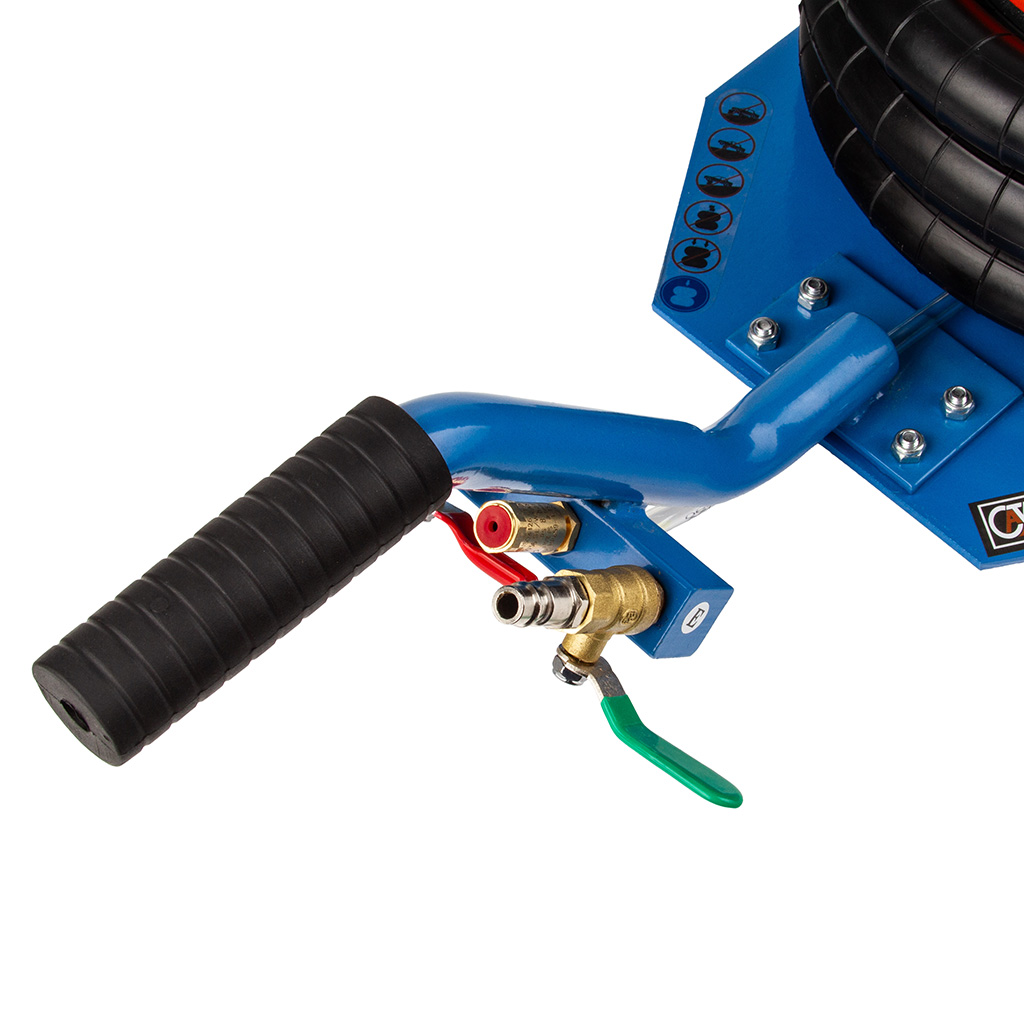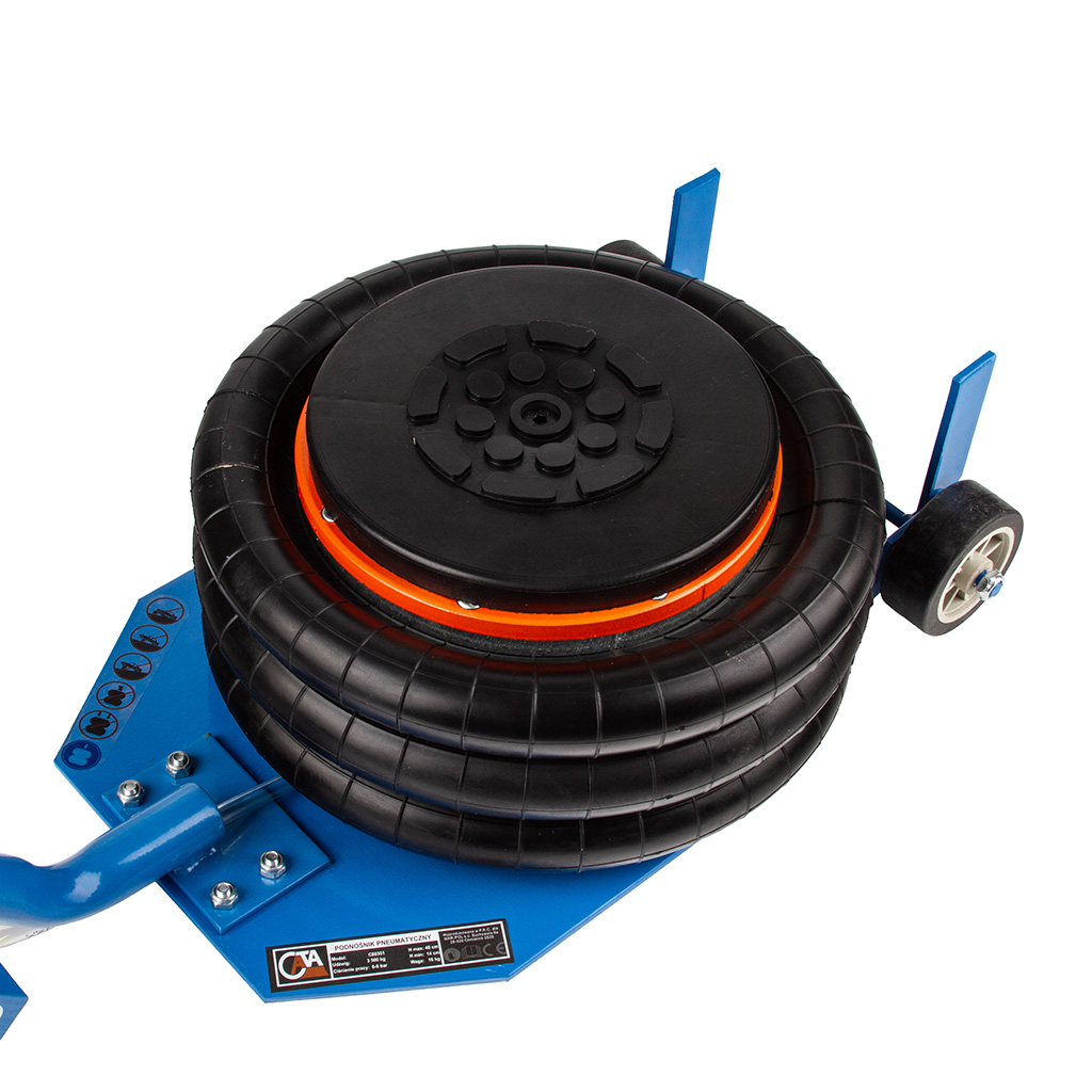 Warsztatowy podnośnik pneumatyczny 3,5T typu bałwanek, wykonany z bardzo wysokiej jakości materiałów. Podnośnik pneumatyczny jest przeznaczony do prac w których wymagane jest podnoszenie dużych ciężarów. Podnośnik przeznaczony jest do pracy w warsztatach samochodowych, wulkanizacjach, gospodarstwach rolniczych i miejscach gdzie występuje potrzeba podnoszenia urządzeń i maszyn.