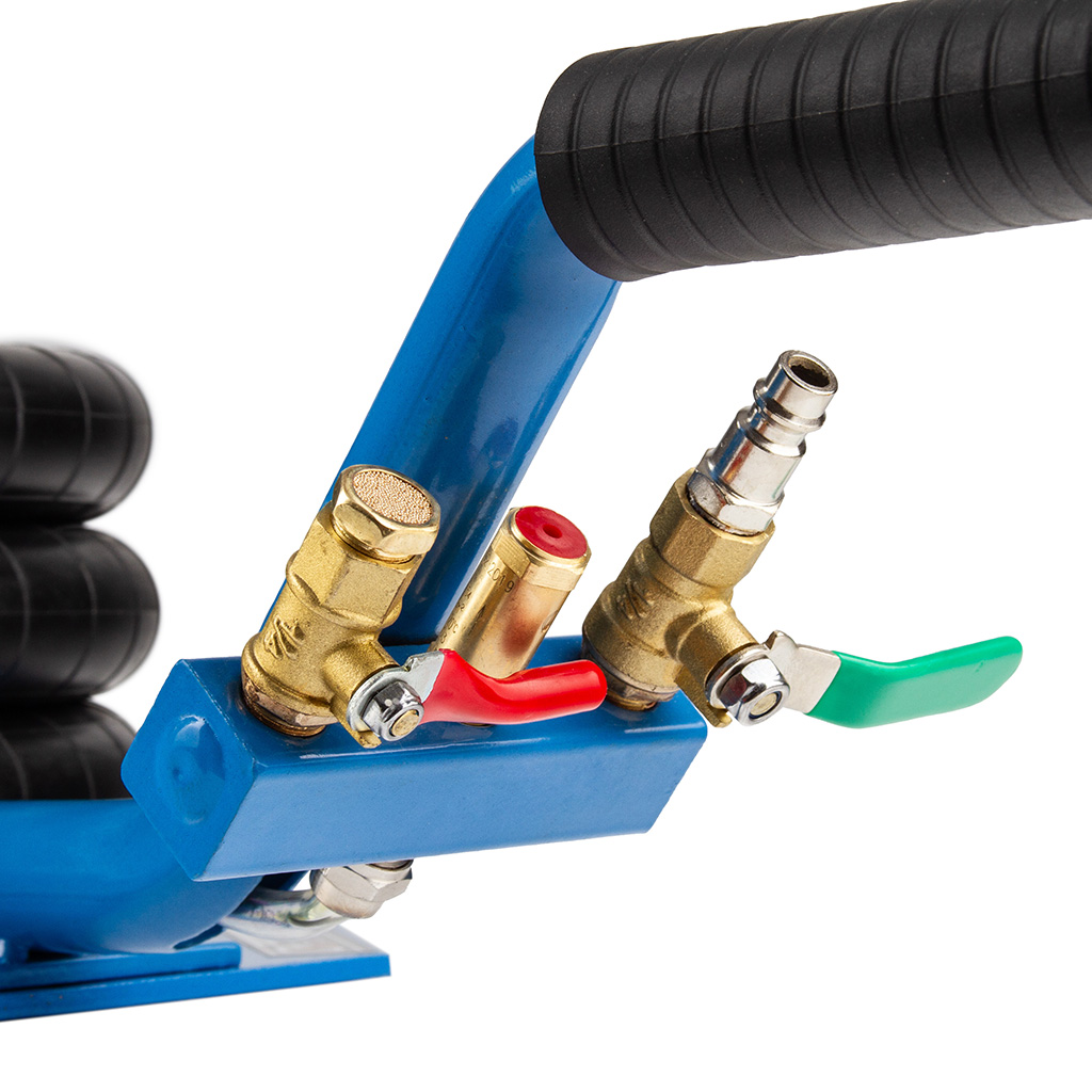 W tym potrójnym bałwanku znajdują się trzy zawory: zawór wlotowy powietrza, zawór spustowy powietrza, zawór bezpieczeństwa, które mogą pomóc w bezpiecznej i szybkiej obsłudze podnośnika.