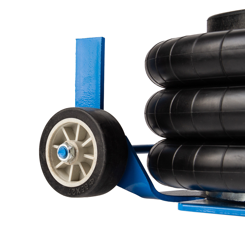 kółka Ø60 mm, wykonane z wytrzymałego tworzywa sztucznego, ułatwiające wsuwanie podnośnika pod podwozie,
