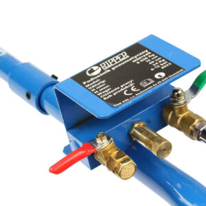 zawory kulowe 3/8” z wygodnymi dźwigniami oznaczonymi kolorem: zasilający – zielona, spustowy – czerwona,