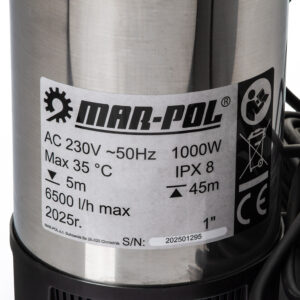 pompy. Przewód zasilający ma długość 15 metrów, co wpływa na wysoki komfort użytkowania urządzenia. Pompa zatapialna