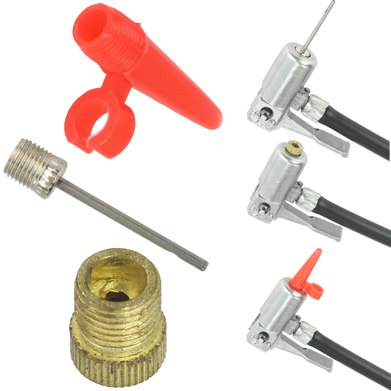 W skład zestawu wchodzą dodatkowo specjalnekońcówki do pompowania piłek, materacy, rowerów.