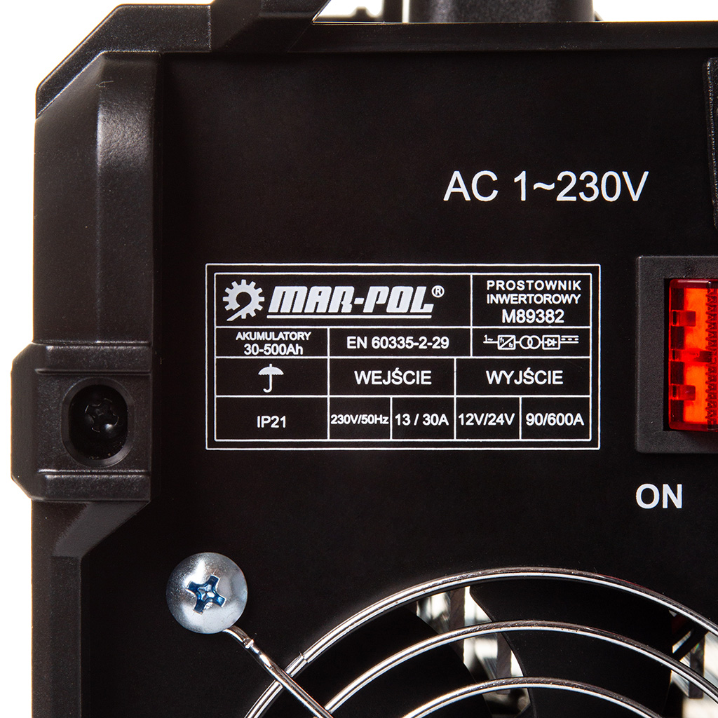 Ładowanie każdego typu akumulatorów. Płynna regulacja – ogranicznik prądu ładowania. Niewielki wymiary i masa. Posiada