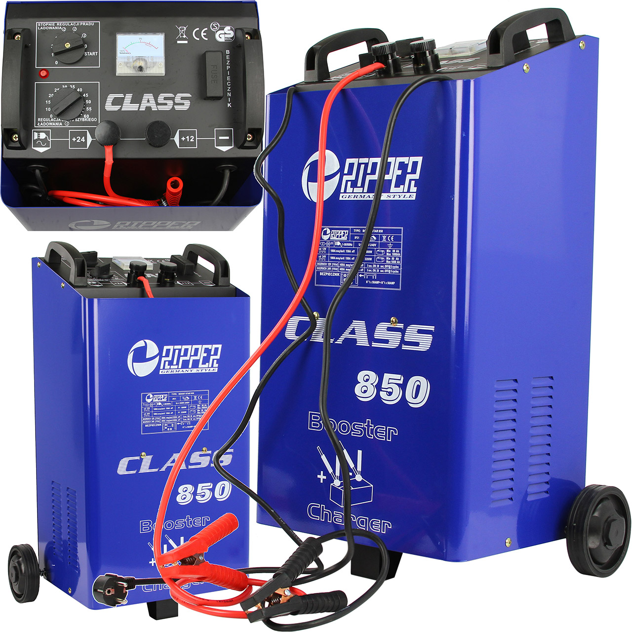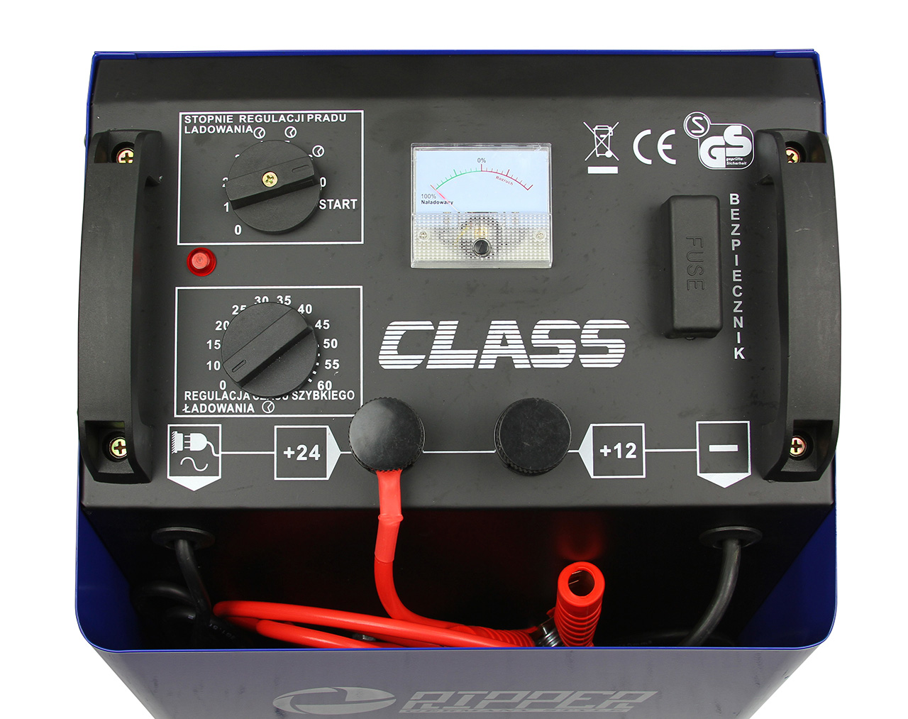 Prostownik CLASS 850 z funkcją rozruchu to profesjonalne narzędzie do ładowania i wspomagania rozruchu akumulatorów ołowiowo-kwasowych o napięciu 12 V; 24 V i pojemności akumulatorów od 80 Ah do 1000 Ah.