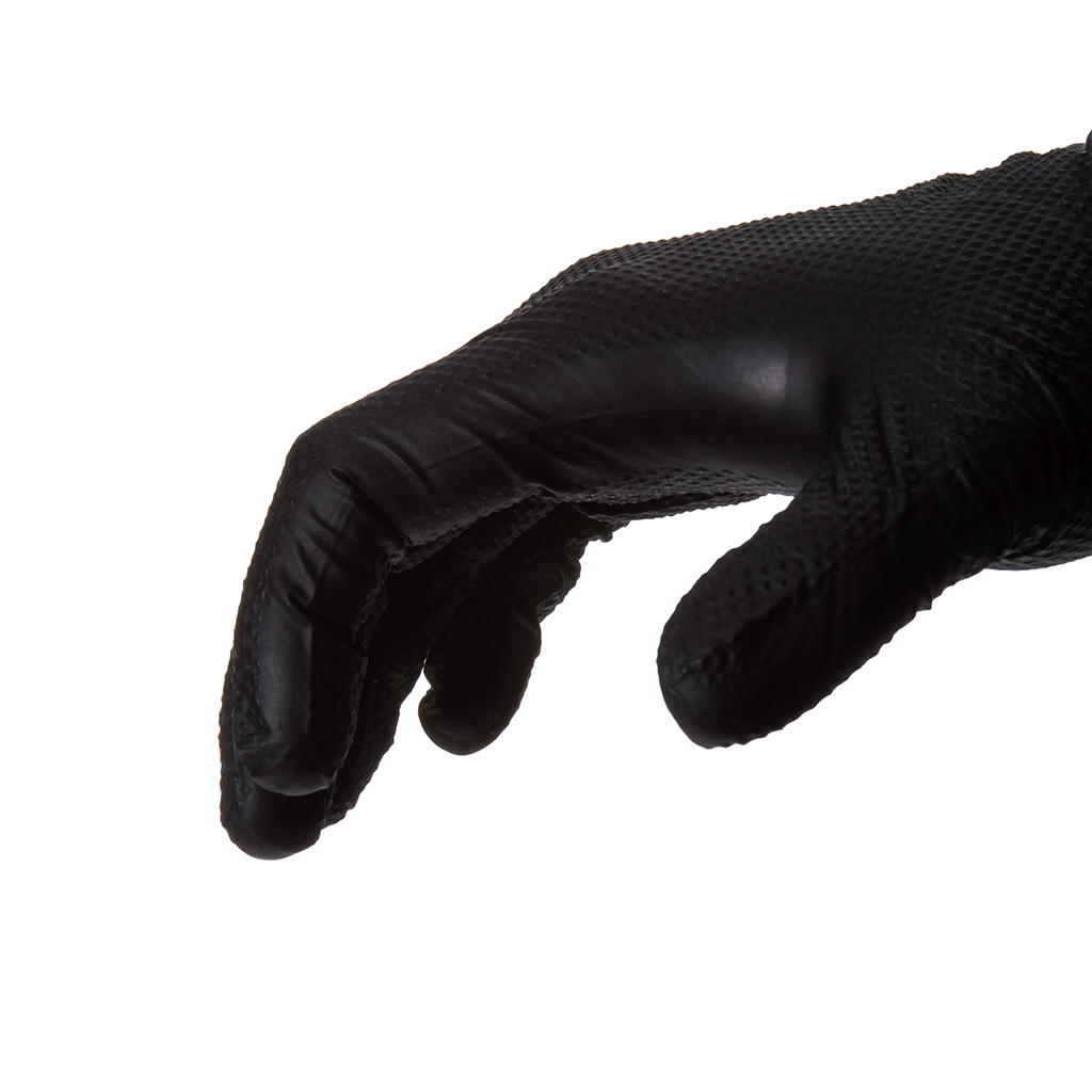 Rękawice wykonane są z wytrzymałego i elastycznego nitrylu, dwukrotnie grubszego niż standardowe rękawice nitrylowe.