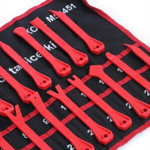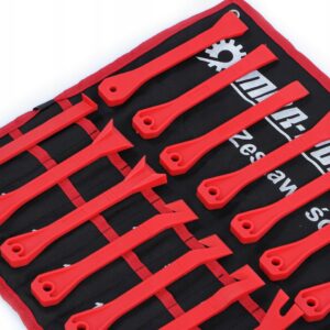 Specjalistyczne ściągacze do demontażu listew, spinek oraz tapicerki w samochodach i urządzeniach technicznych. Zestaw znajdzie zastosowanie w warsztatach blacharskich oraz u mechaników. Wykonanie z nylonu gwarantuje bezpieczeństwo użycia dla plastikowych elementów separowanych. Posiadają specjalne profile umożliwiające użycie dźwigni przy demontażu spinek tapicerskich.