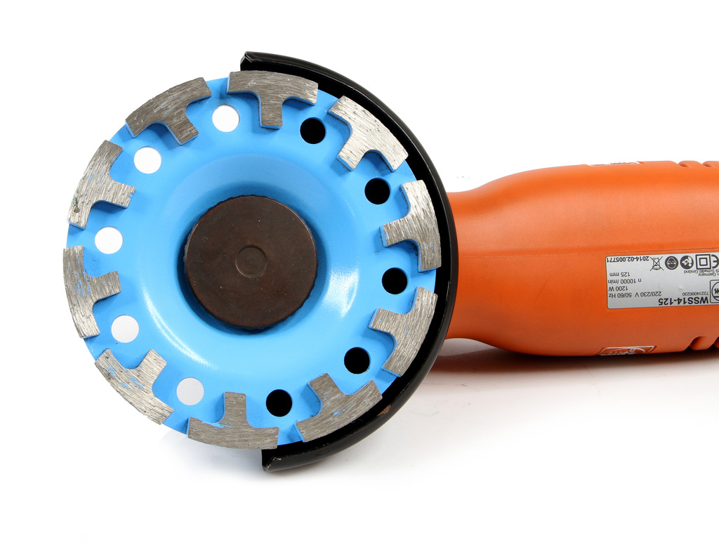 • Diamentowa tarcza garnkowa o średnicy 125 mm jest przeznaczona do szlifowania powierzchni betonu przy użyciu szlifierki kątowej.