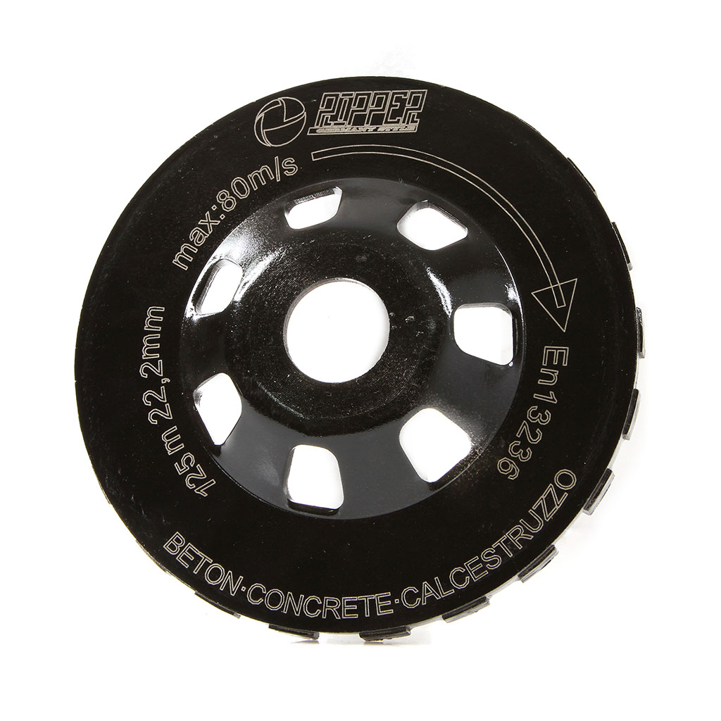• Diamentowa tarcza garnkowa o średnicy 125 mm jest przeznaczona do szlifowania powierzchni betonu przy użyciu szlifierki kątowej.