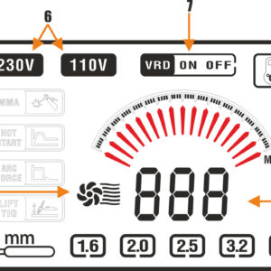 6. Wskazanie jakie napięcie jest dostarczane do spawarki.