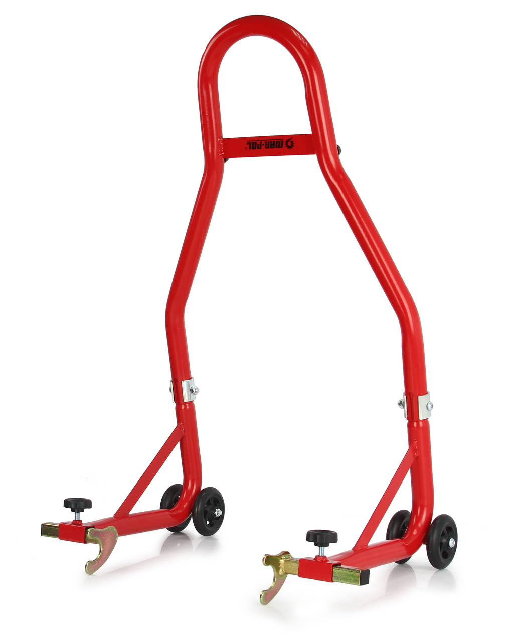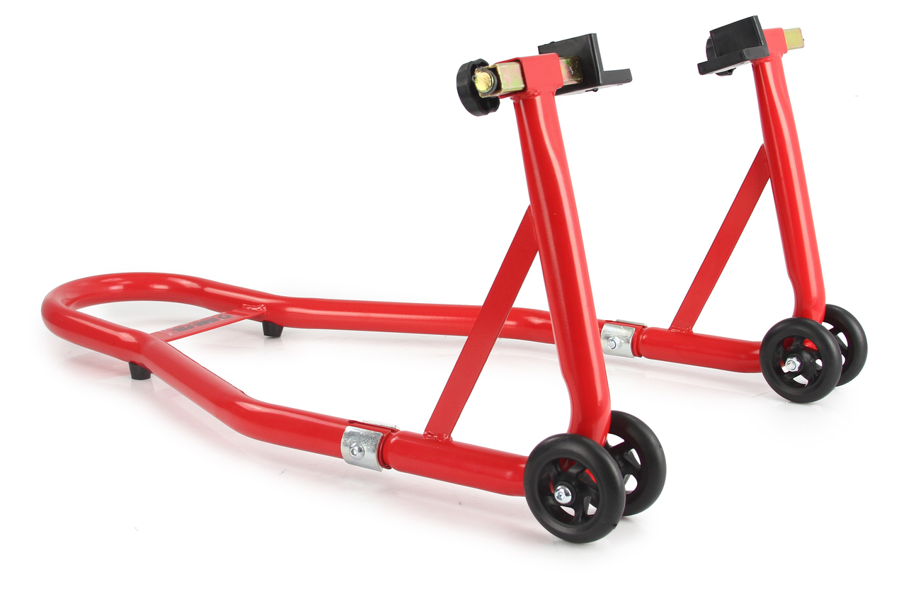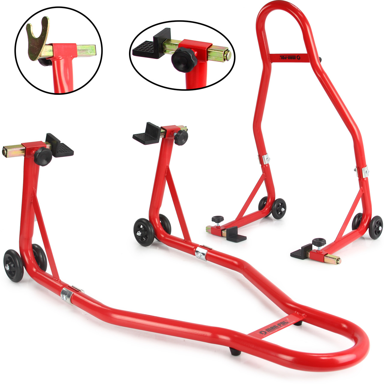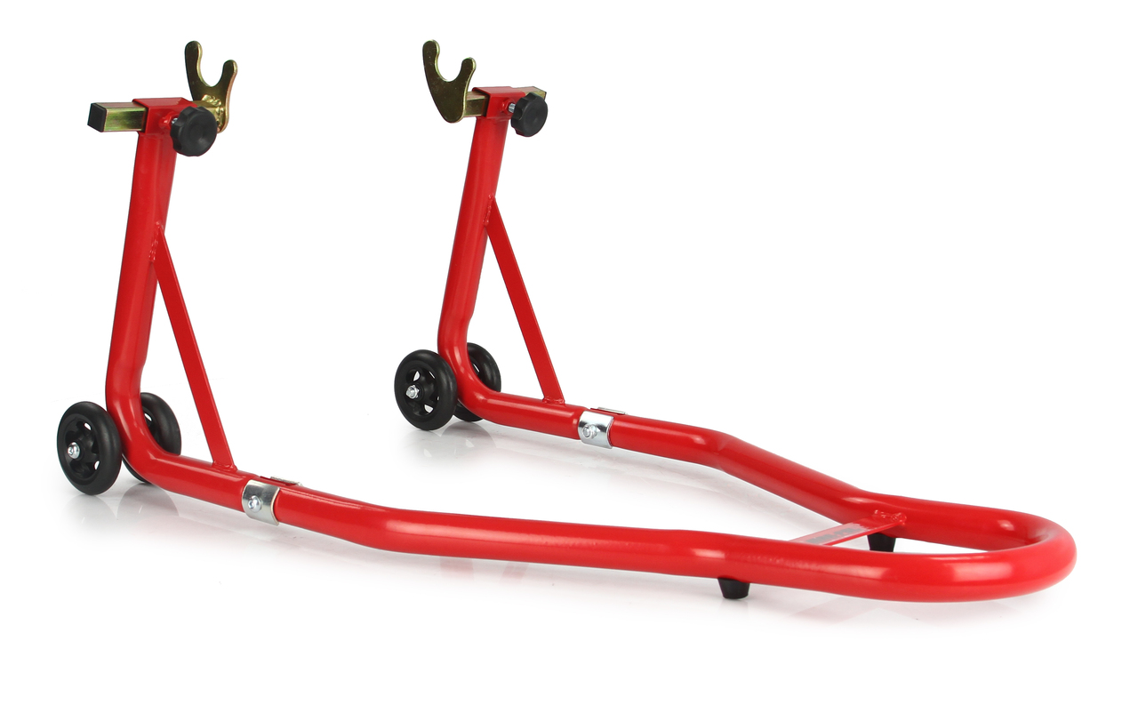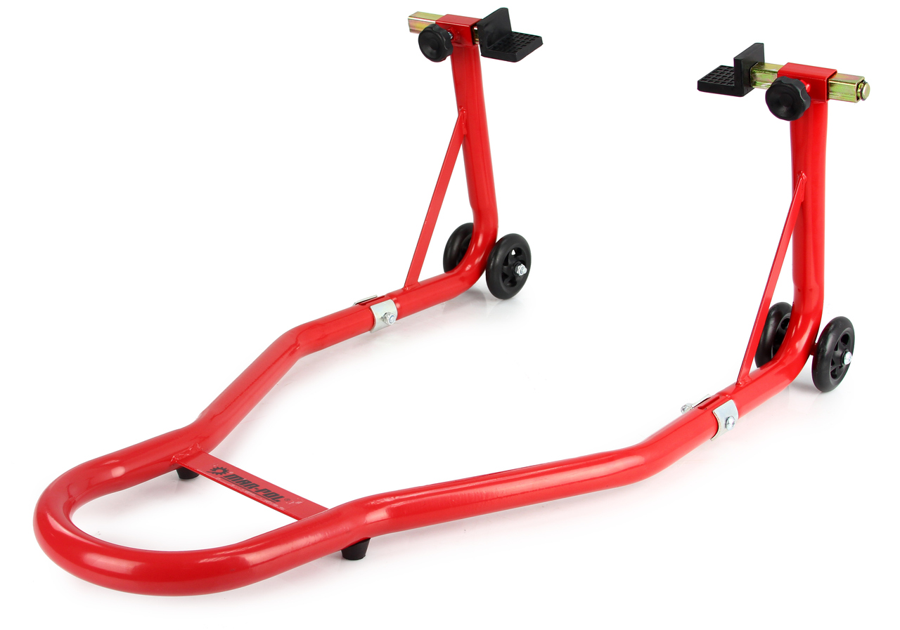 ✔️ Uniwersalny stojak do motocykli pasuje do większości motorów dostępnych na rynku. Podnośnik wyposażony został w koła jezdne co umożliwia łatwy transport. Wykonany został z mocnego metalu. Stojak bez problemy poradzi sobie z utrzymaniem motocykla. W zestawie znajdują się 2 adaptery możliwość montażu na przód bądź tył w zależności od potrzeby użytkownika.