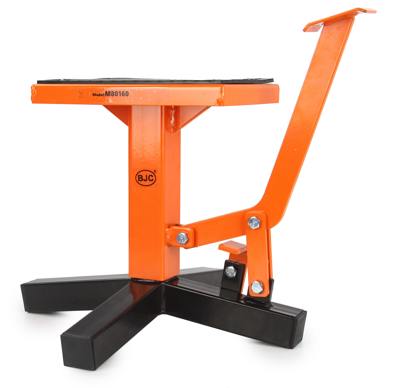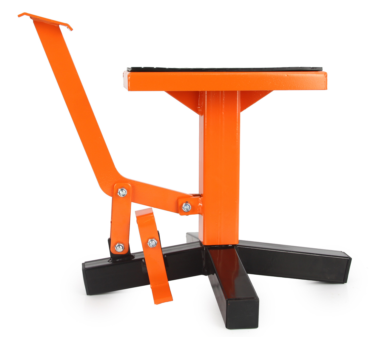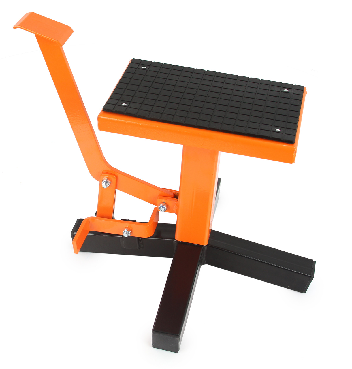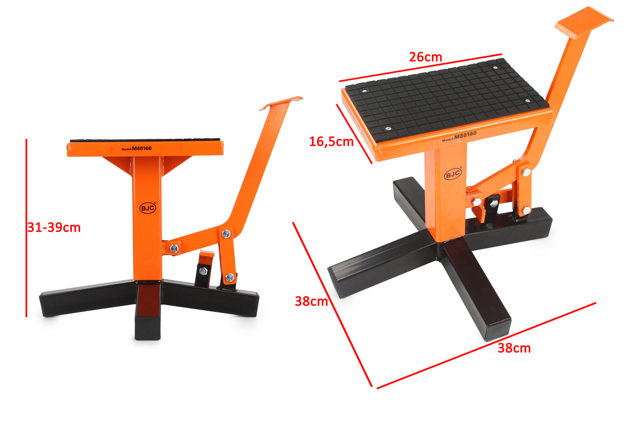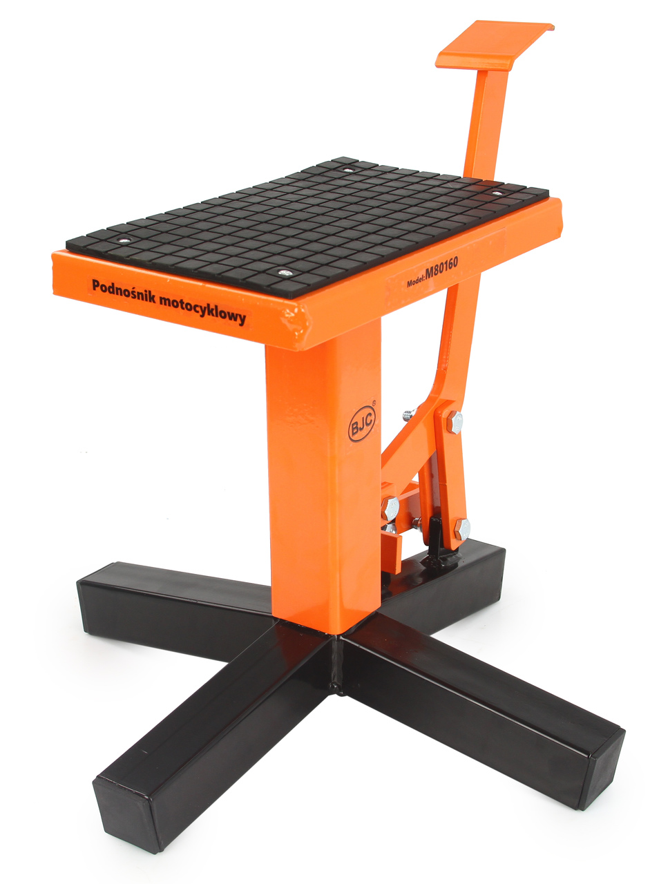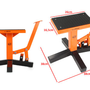 ✔️ Wysokiej jakości funkcjonalny podnośnik. Dedykowany dla motocykli typu CROSS / ENDURO. Podnośnik wykonany został z materiałów najwyższej jakości. Dodatkowo wzmacniana konstrukcja stojaka gwarantuje stabilne i bezpieczne podnoszenie motocykla. Antypoślizgowa guma na płycie podnośnika