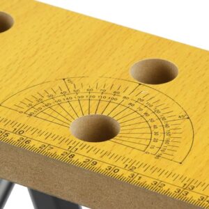 Blat posiada kątomierz i miarkę wyskalowaną w centymetrach i calach. Na blacie stołu roboczego znajduję