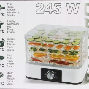 Suszarka składa się z 5 sit o drobnej siatce, co zapobiega osuwaniu się nawet najmniejszych produktów.