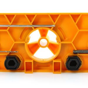 W szablonie znajduje się wiertło z ostrzami z węglików spiekanych, które wierci za każdym razem na idealną głębokość dzięki dołączonemu ogranicznikowi głębokości.