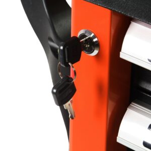 Centralny zamek z dwoma kluczami zamykający wszystkie szuflady oraz podwójne ściank i zabezpieczają narzędzia przed niepożądanym dostępem lub kradzieżą , zapasowy kluczyk w zestawie w przypadku zgubienia jednej sztuki.