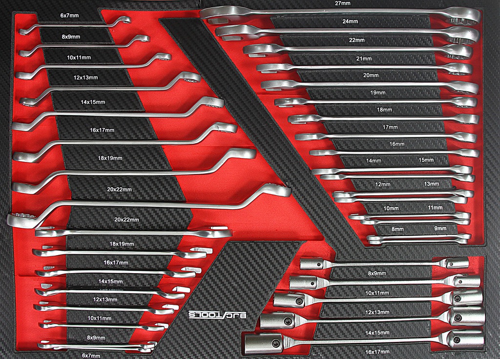 ⭐ starannie i dokładnie wykonane tacki wyłożone specjalnym materiałem z wyżłobionymi miejscami na klucze zapewniają łatwy wybór i odkładanie elementów na swoje miejsce