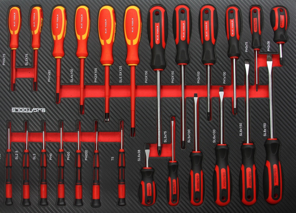 ✔️ Zestaw śrubokrętów: płaskie: 8x150mm; 6x150mm; 6x100mm; 5x100mm; 3x75mm; 6x38mm. krzyżaki: 3×150; 2×150; 2×100; 1×100; 0x75; 2×38