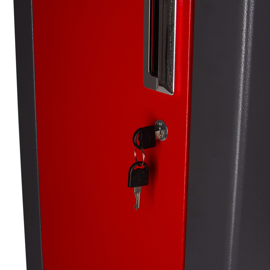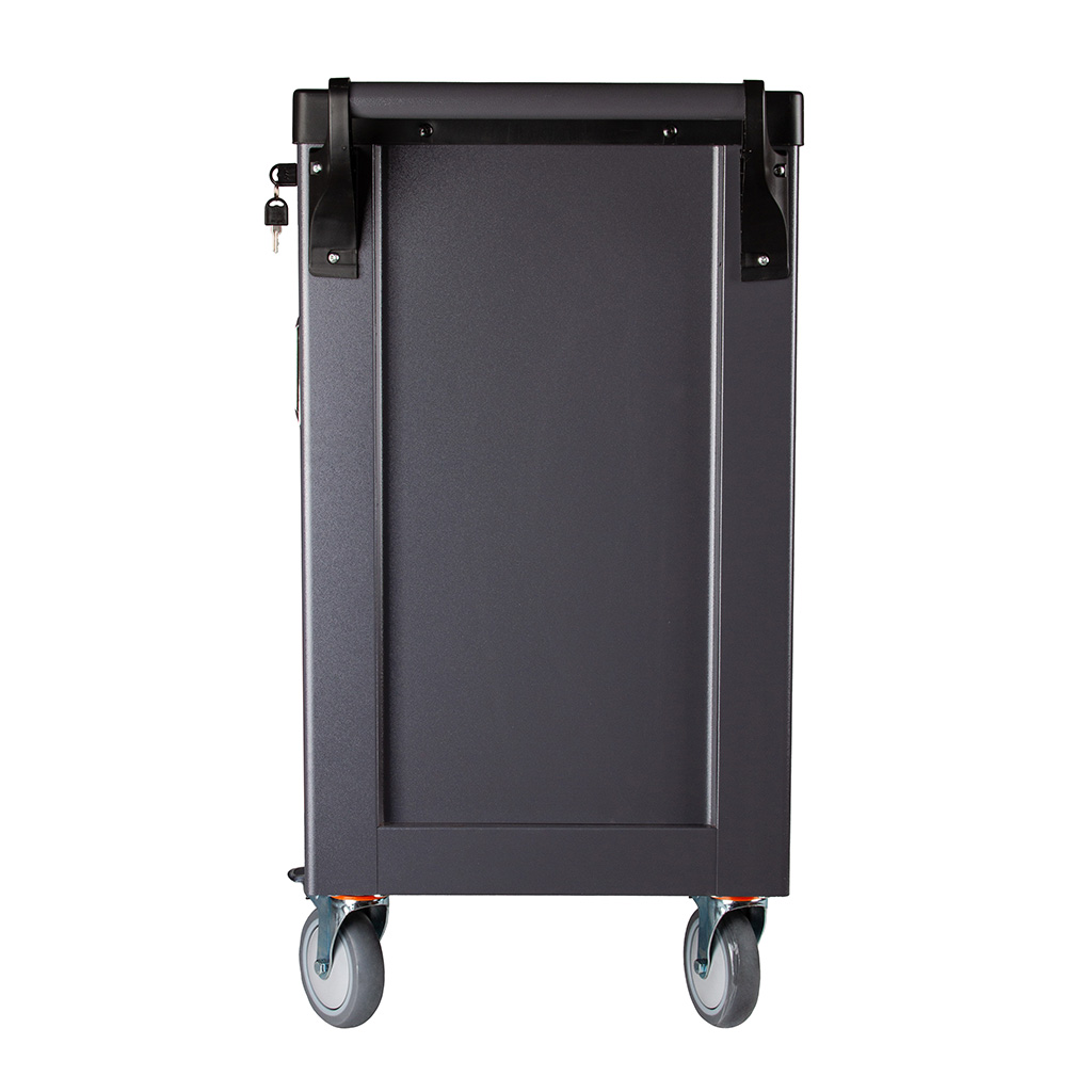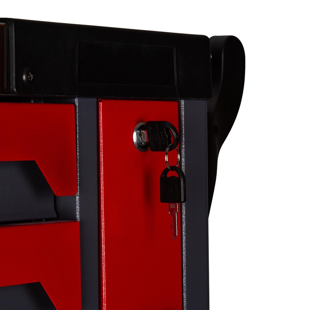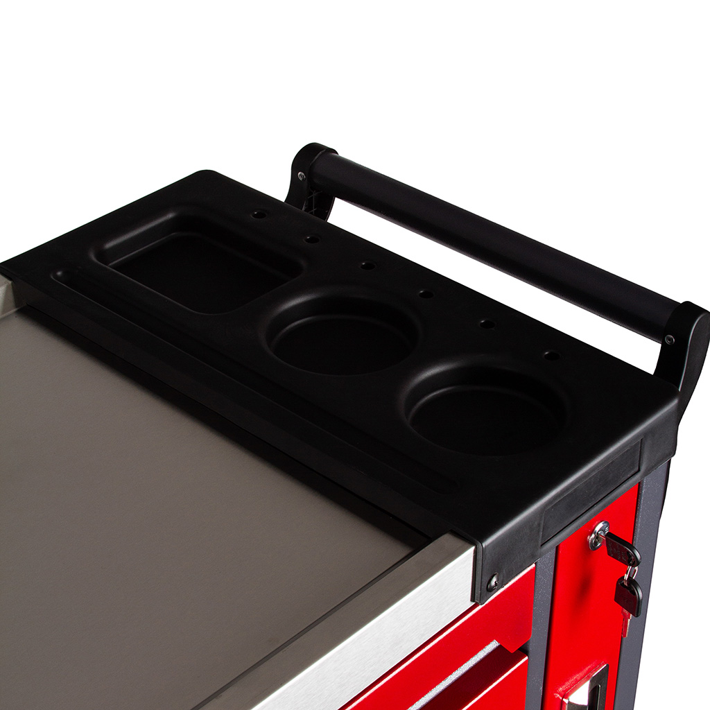 Ten wózek warsztatowy został stworzony z myślą o profesjonalistach, ale sprawdzi się także idealnie w Twoim garażu, domowym warsztacie czy gospodarstwie rolnym. Jego funkcjonalność, wytrzymałość i praktyczne rozwiązania sprawią, że praca stanie się jeszcze bardziej efektywna i przyjemna. Daj sobie szansę na lepszą organizację i wygodę podczas prac w warsztacie. Wybierz szafkę warsztatową i zyskaj solidność oraz funkcjonalność, której potrzebujesz! Profesjonalny wózek warsztatowy z 7 szufladami na łożyskach kulkowych i składzikiem zamykanym na kluczyk. Centralny zamek. Duże kierowane koła, automatyczna blokada, hamulec zapewniają przy przemieszaniu szafy komfort bezpieczeństwa nawet na małych pochyłościach. Stalowy blat odporny na środki chemiczne, oleje, wysoką temperaturę oraz uszkodzenia. Sama konstrukcja i szuflady są wykonane z blachy co sprawia, że szafa jest stabilna i wytrzymała.
