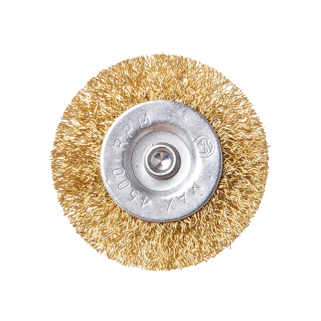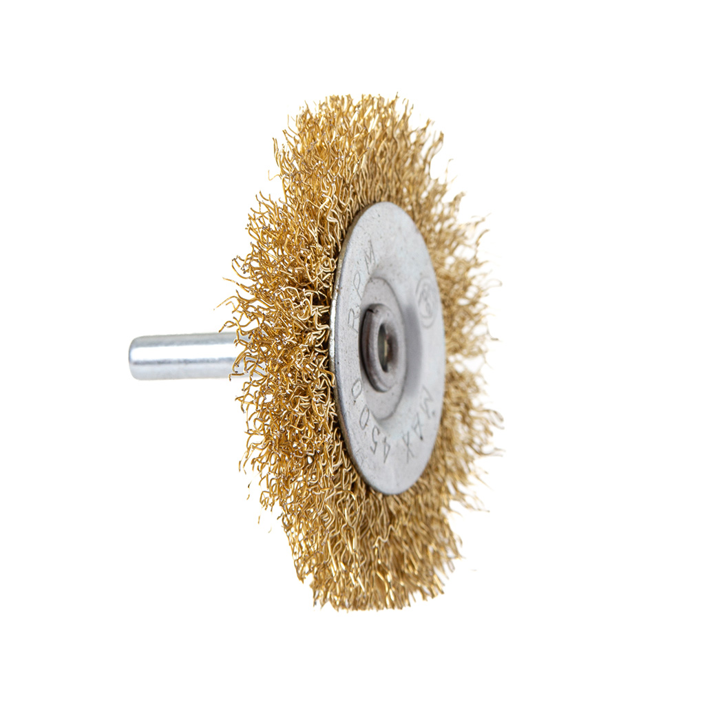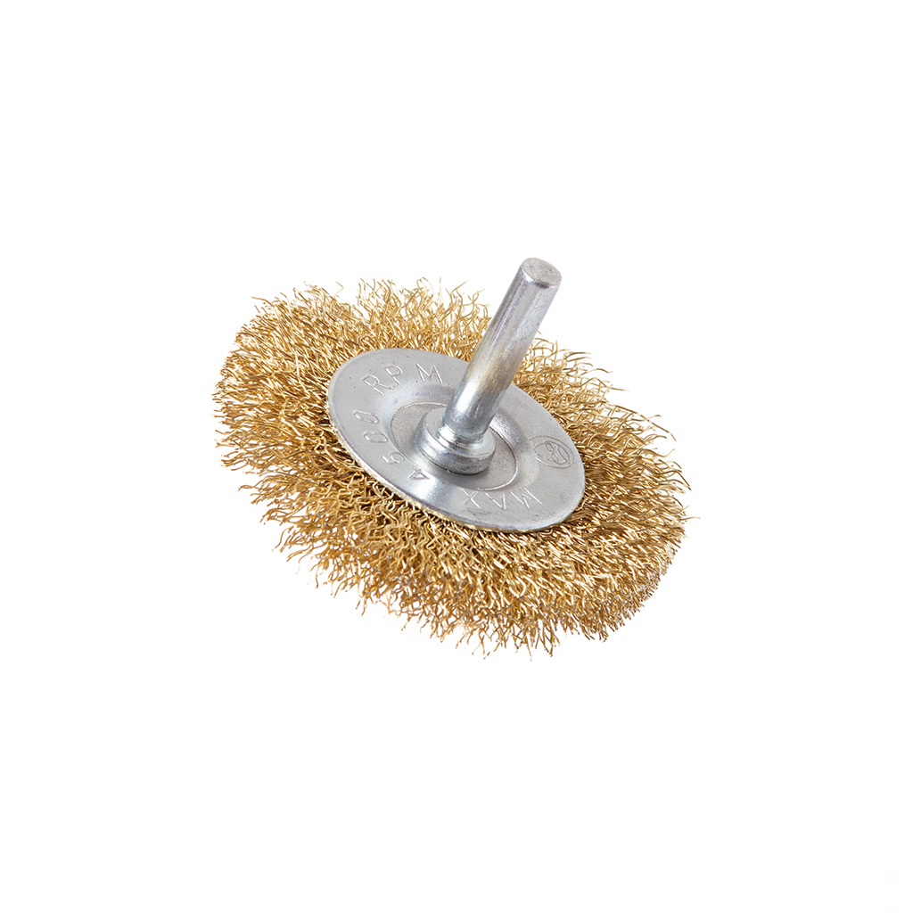 SZCZOTKA DRUCIANA MOSIĄDZOWANA TARCZOWA 65mm Z TRZPIENIEM Materiał wykonania drut mosiądzowany