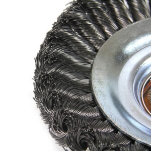 Tarcza szczotkowa z wysokiej jakości stali odpornej na obciążenia siły odśrodkowej oraz bardzo wysokie obroty dochodzące nawet do 10000 obr/min.