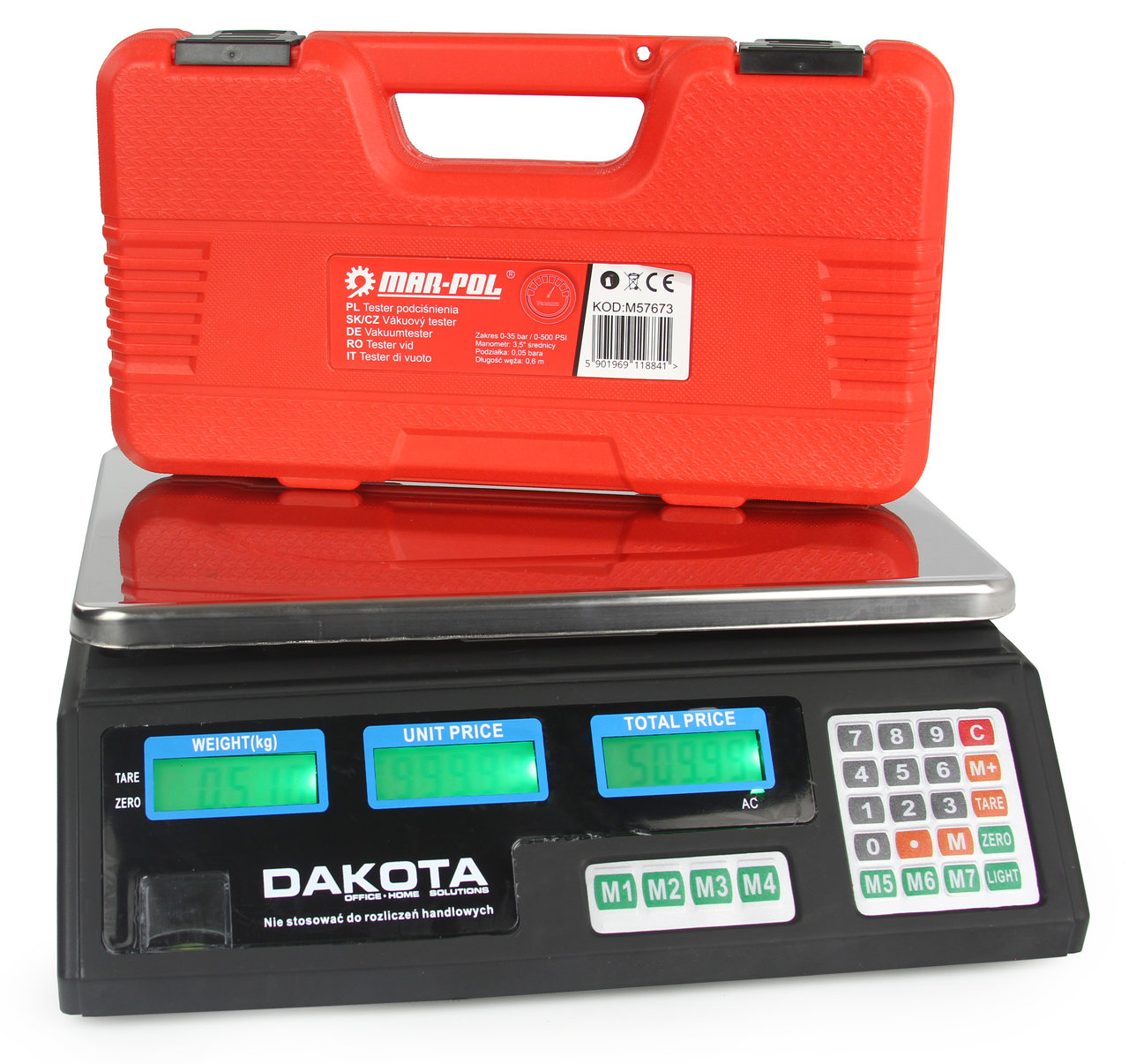 Uniwersalna waga, do stosowania w pomieszczeniach oraz na powietrzu, przydatna w handlu obwoźnym jak również stacjonarnym. Waga posiada wbudowaną poziomicę oraz 6 czytelnych wyświetlaczy, 3 z przodu do obsługi wagi oraz 3 z tyłu dla klienta. Wyświetlacze są bardzo czytelne i posiadają możliwość 2 stopniowego podświetlenia o różnym natężeniu jasności światła. Waga posiada na wyświetlaczu wskaźnik poziomu naładowania baterii dzięki czemu nie musimy się martwić o rozładowanie wagi w kluczowym momencie. Waga posiada także wbudowane oczko poziomicy co pozwala na dokładne wypoziomowanie wagi w każdym miejscu. Dodatkowo nóżki można regulować co pozwala na wypoziomowanie na lekko nierównych powierzchniach.