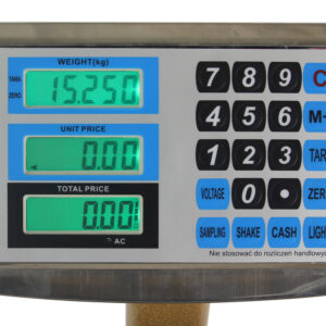Duży czytelny wyświetlacz LCD widoczny zarówno w jasnych, jak i ciemnych pomieszczeniach – możliwość ustawienia jasności świecenia cyfr! Waga jest kalkulacyjna (po wpisaniu ceny waga sama wylicza wartość towaru) i posiada wyświetlacze LCD, dzięki czemu są widoczne w każdych warunkach.
