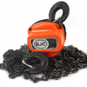 Wyciągarka łańcuchowa marki BJC posiada napęd ręczny i przekładnię, która pozwala na podniesienie ciężaru do 1000 kg. Łańcuch wykonany z wysokiej jakości stali. Ogniwa łączone metodą zgrzewania oporowo-iskrowego, co gwarantuje odpowiednią jakość i wytrzymałość ogniwa. Wyciągarka wyposażona jest w bezpieczne haki posiadające blokadę uniemożliwiającą wypięcie się ładunku.