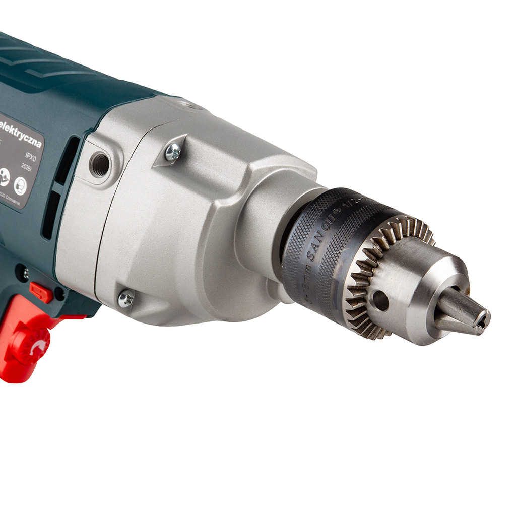 - przełącznik kierunku obrotów i regulowana prędkość obrotowa umożliwiają wykręcanie wkrętów, wiercenie w metalu wiertłami choinkowymi czy wiercenie przy użyciu statywu