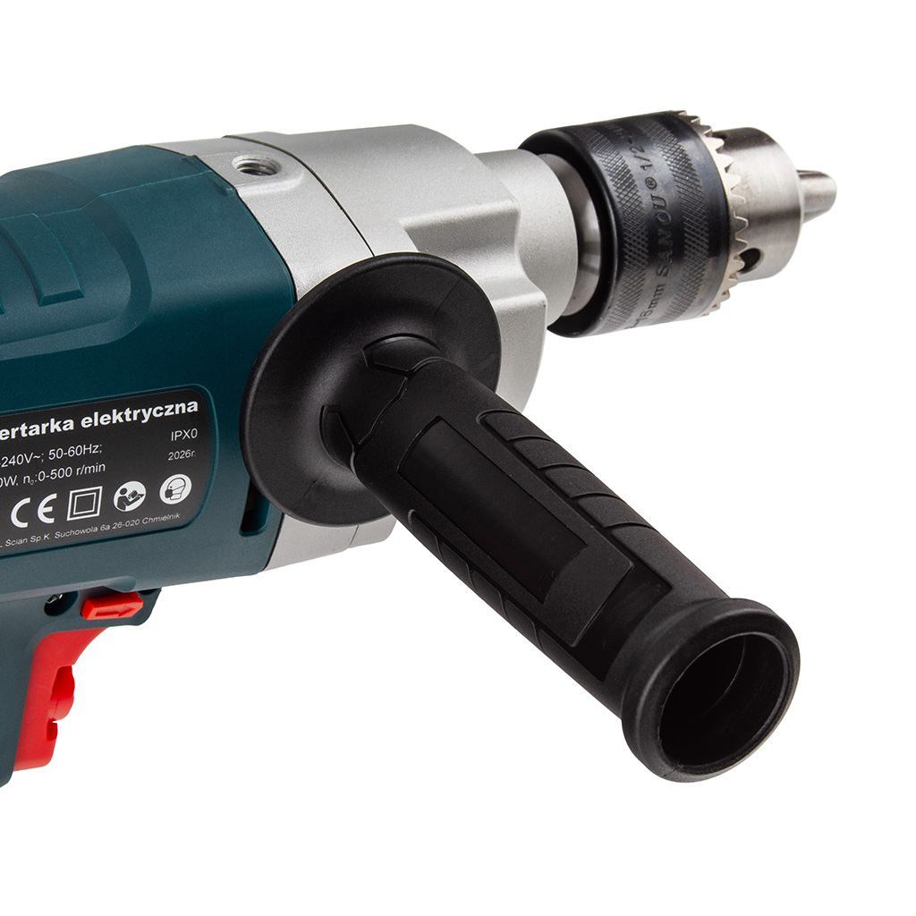 - uchwyt metalowy 16 mm może pracować z bardzo szeroką gamą osprzętu: końcówki mieszające, bity i przedłużki, wiertła do metalu, świdry do drewna, otwornice