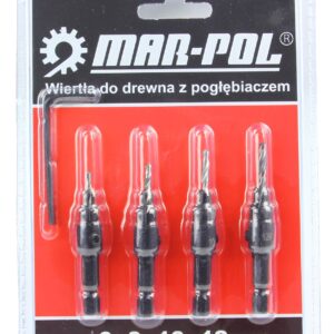 Zestaw 4 wierteł do drewna z pogłębiaczem hex 1/4″