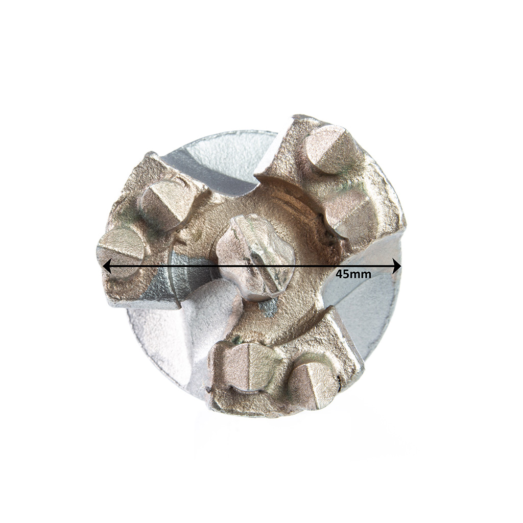 głowica w kształcie dzwonu. Asymetryczne zęby kruszące z węglika spiekanego ułatwiają wiercenie. Szpic centrujący zwiększa