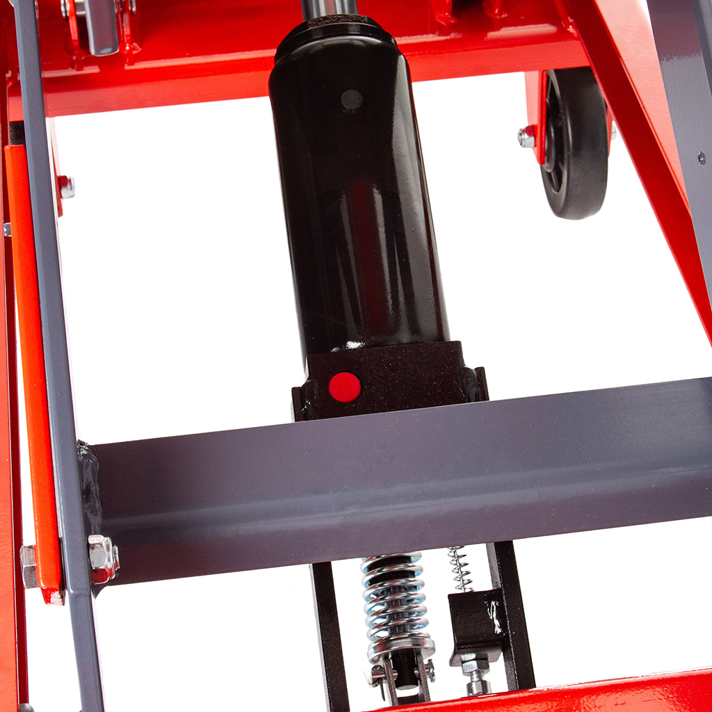 Ergonomiczna rączka do bezstopniowego opuszczania platformy w wózku nożycowym platformowym została zaprojektowana z myślą o maksymalnym komforcie i precyzji obsługi. Jej wygodny kształt umożliwia pewny chwyt, co pozwala na łatwe i intuicyjne operowanie mechanizmem opuszczania. Bezstopniowa regulacja sprawia, że operator może płynnie dostosować prędkość opuszczania platformy do aktualnych potrzeb, co jest szczególnie istotne przy delikatnych ładunkach. Taka konstrukcja gwarantuje nie tylko wygodę, ale również bezpieczeństwo pracy oraz większą kontrolę nad transportowanym towarem.