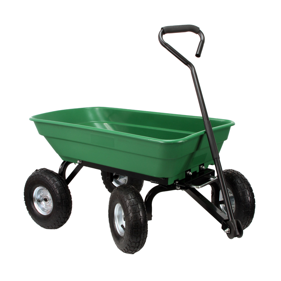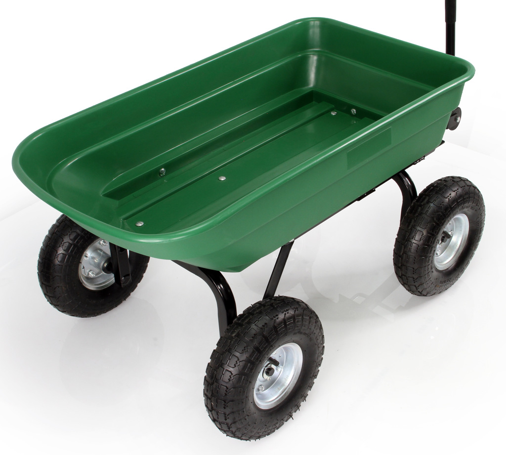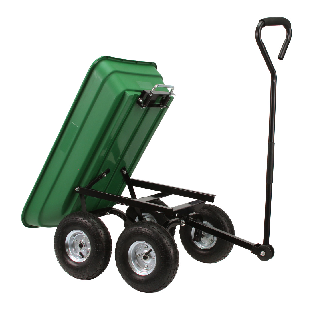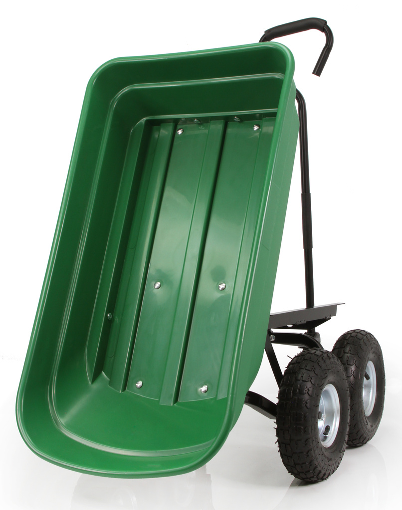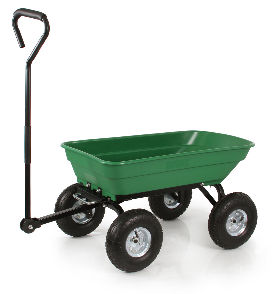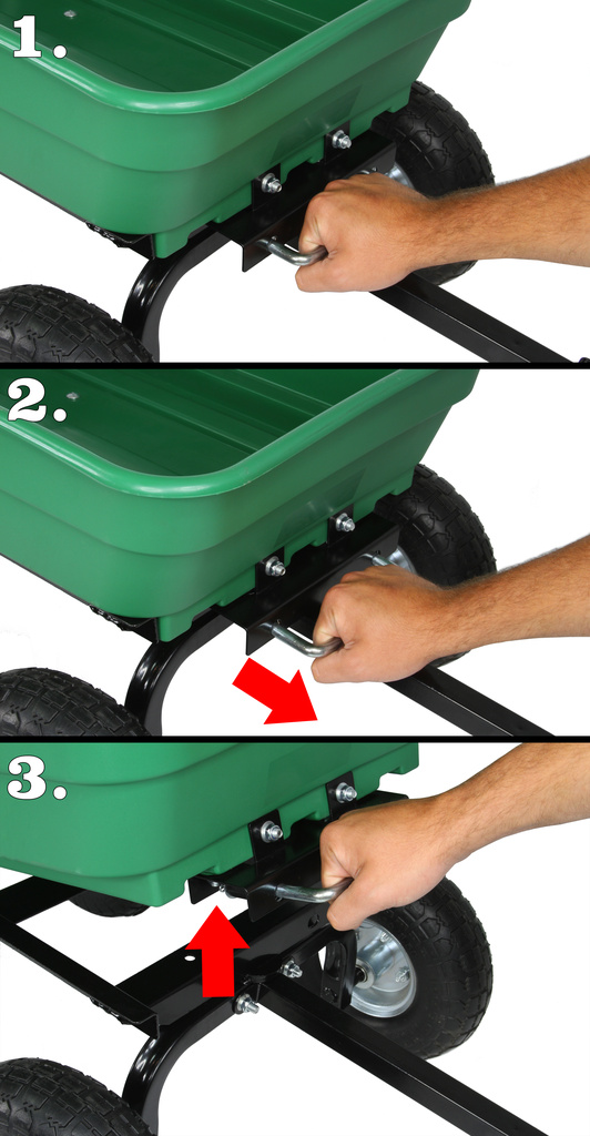 Wózek ogrodowy posiada funkcję wywrotki, która pozwala w kilku sekund opróżnić przyczepkę. Ogromnie przydatna funkcja pozwalająca na przyspieszenie prac z wykorzystaniem wózka. Raz dwa opróżnisz załadowany wózek.