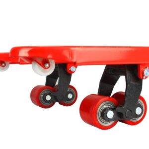 Wózek wykonany z grubej blachy stalowej, zapewniającej odpowiednią sztywność konstrukcji.