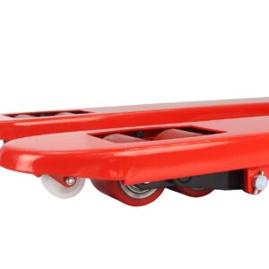 Podnośnik został wyposażony w ergonomiczną rączkę do wygodnego sterowania wózkiem i pompowania siłownika.