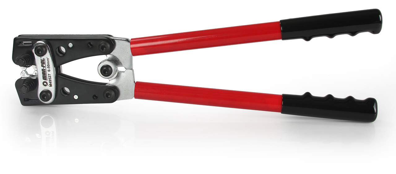 Ręczna praska to idealne narzędzie do zaciskania tulejek kablowych Cu i Al. Zaciskarka posiada sześciokątne matryce HEX wykonane ze stali. Optymalne przełożenie dźwigni pozwala na zaciskanie przy użyciu niewielkiej siły. Ergonomiczny uchwyt zapewnia pewny chwyt narzędzia. Solidne wykonanie gwarantuje, że urządzenie posłuży nam przez wiele lat.