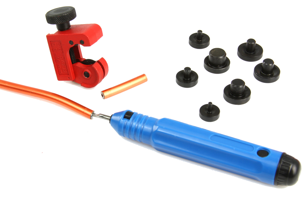 Uniwersalny zestaw do zarabiania przewodów hamulcowych i rurek + obcinak + gradownik.