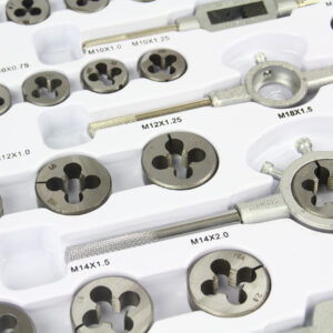 35 gwintowników stożkowych: M2x0,4 mm; M3x0,5 mm; M4x0,7 mm; M5x0,8 mm; M6x0,75 mm;