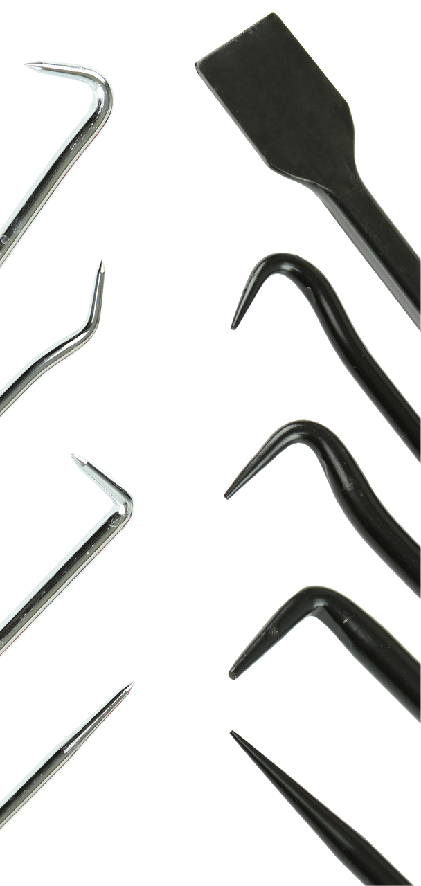 Zestaw haczyków z rękojeścią. Haczyki posiadają hartowane i chromowane groty. Rękojeść wykonana z wysokogatunkowego antypoślizgowego materiału. Zestaw został wykonany z wysokiej jakości materiałów.
