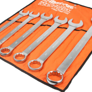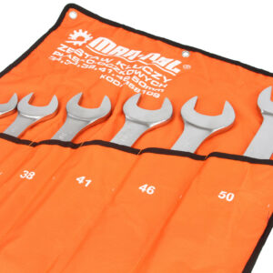 Bardzo wysokiej jakości klucze płasko-oczkowe wykonane ze stali chromo-wanadowej. Przeznaczone do pracy zarówno w warunkach domowych jak i w profesjonalnym warsztacie. Spełniają normy DIN 3113. Klucze mają estetyczne polerowane wykończenie. Całość zapakowana została w wygodne zwijanie etui, dzięki czemu zajmuje mało miejsca. Pokrowiec wykonany jest z bardzo mocnego i wytrzymałego materiału, a otwory w jego górnych rogach umożliwiają powieszenie ich na ścianie.