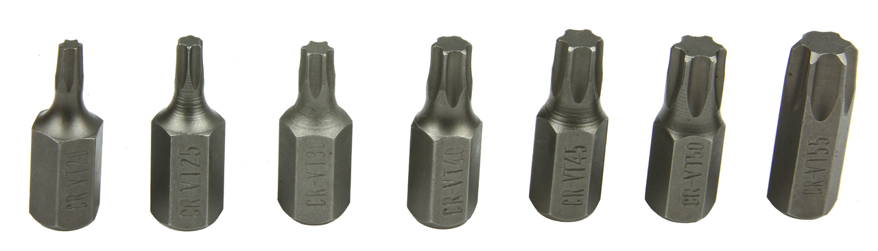 – klucze imbusowe hex: 4; 5; 6; 7; 8; 10; 12mm- klucze torx: 20; 25; 27; 30; 40; 45; 50; 55; 60mm- klucze spline: 5; 6; 8; 10; 12mm- uchwyt do bitów na grzechotkę lub pokrętło 3/8″- uchwyt do bitów na grzechotkę lub pokrętło 1/2″