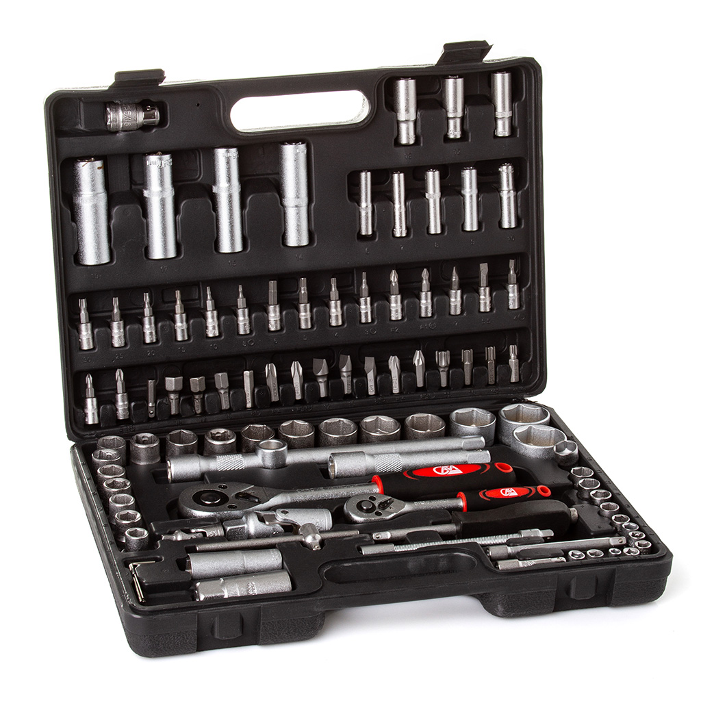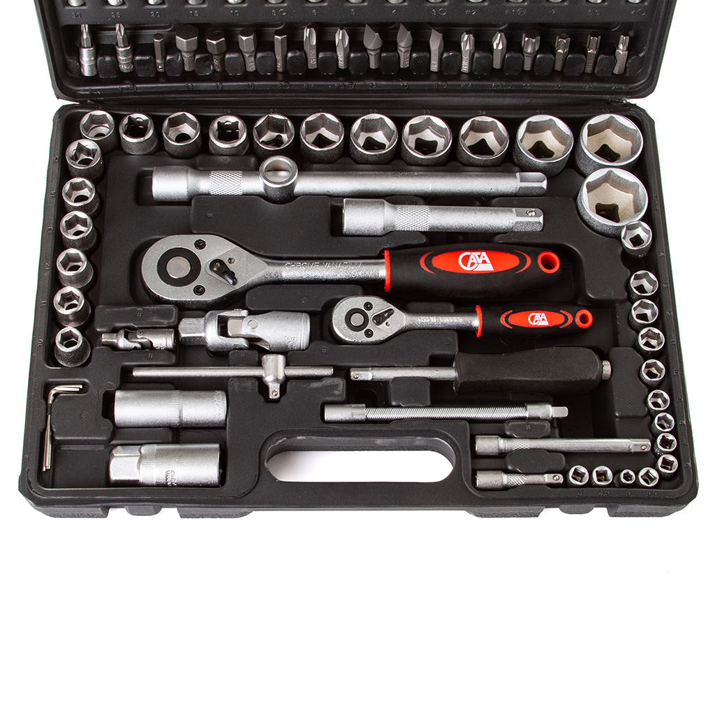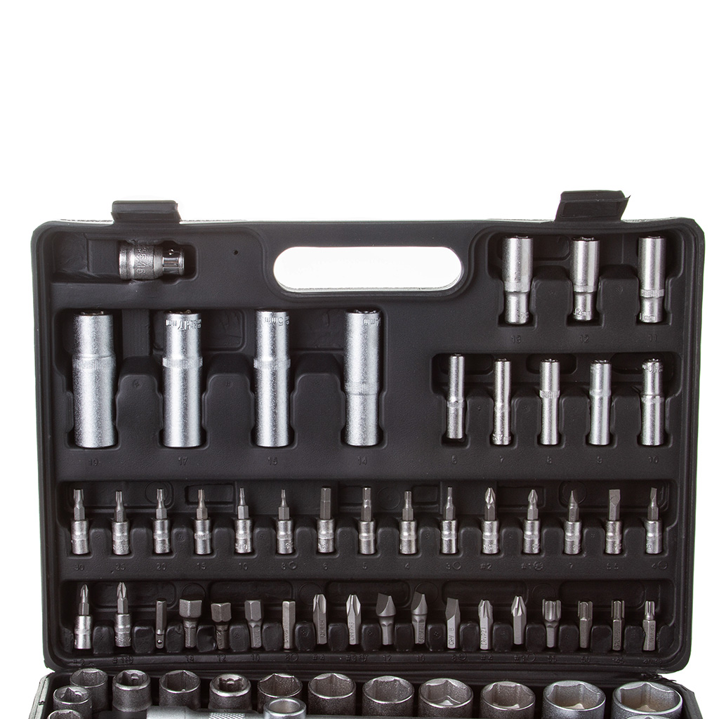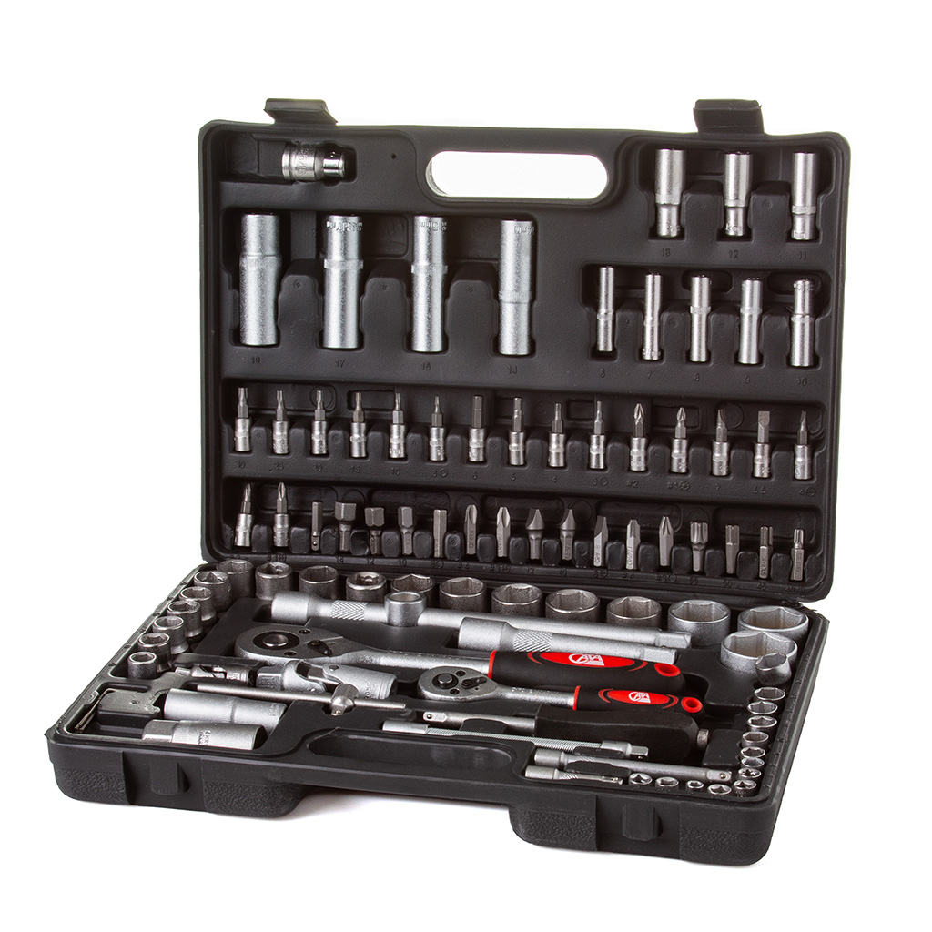 Uniwersalny zestaw kluczy nasadowych 94 elementów ze stali chrome vanadium. Klucze przeznaczone są są dla amatorów i do domowego użytkowania .