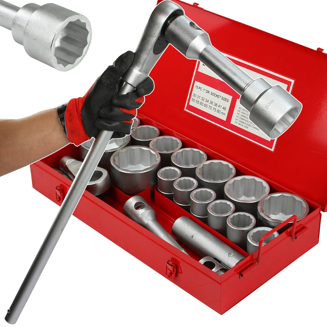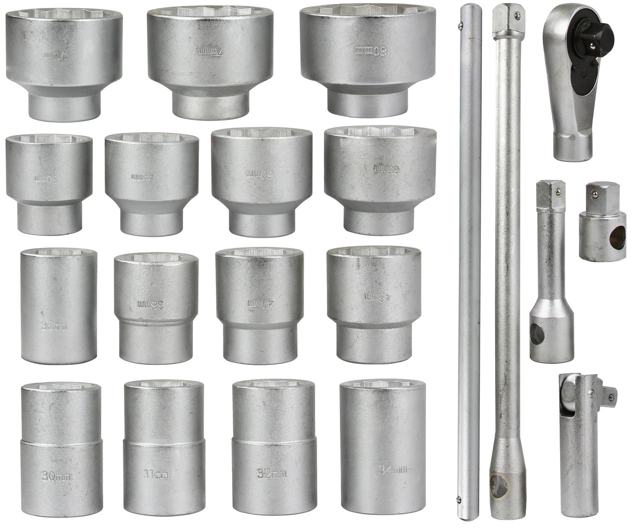 klucze nasadowe 1”: 30; 31; 32; 34; 36; 38; 41; 46; 50; 55; 60; 65; 70; 75; 80mm