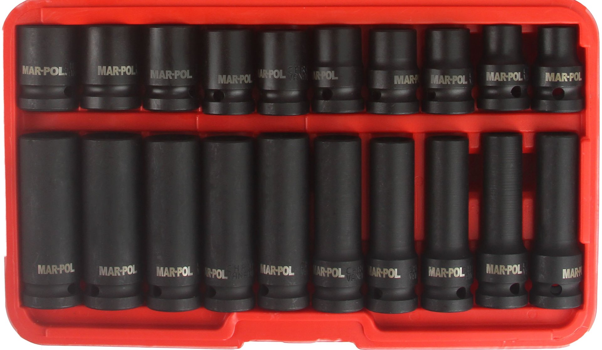 Kompletny zestaw składający się z nasadek krótkich ( 38 mm ) oraz nasadek długich ( 78 mm )