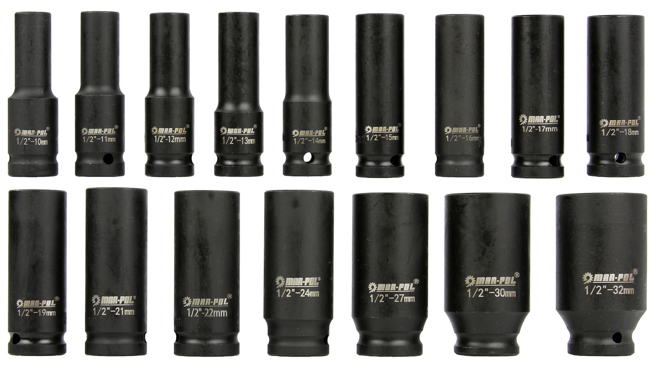 Zestaw wysokiej jakości nasadek udarowych 1/2″ 10 – 32 mm